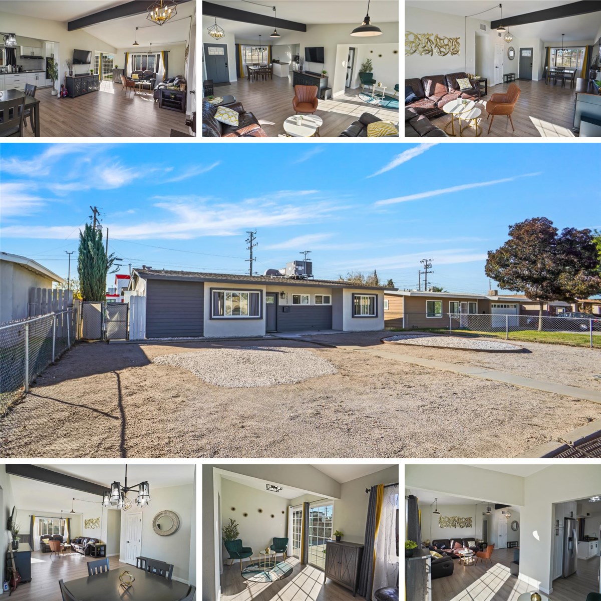 Move-in-ready single-story home with a private pool and tasteful updates throughout. This 3-bedroom, 2-bath property offers an efficient layout with approximately 1,095 sq. ft. of living space on a 6,560 sq. ft. lot. The updated kitchen includes modern cabinetry, granite-style countertops, and a functional island. The home features neutral interior paint, laminate flooring, and a decorative wood beam that adds warmth to the living area. Both bathrooms have been upgraded with tile flooring and updated fixtures. Step outside to a private backyard with a pool — a great space for outdoor enjoyment. Additional improvements include updated HVAC, dual-pane windows, interior cosmetic upgrades, and a solar system for added energy efficiency. Conveniently located near shopping, dining, schools, and local amenities. A well-maintained home at an attractive price point.