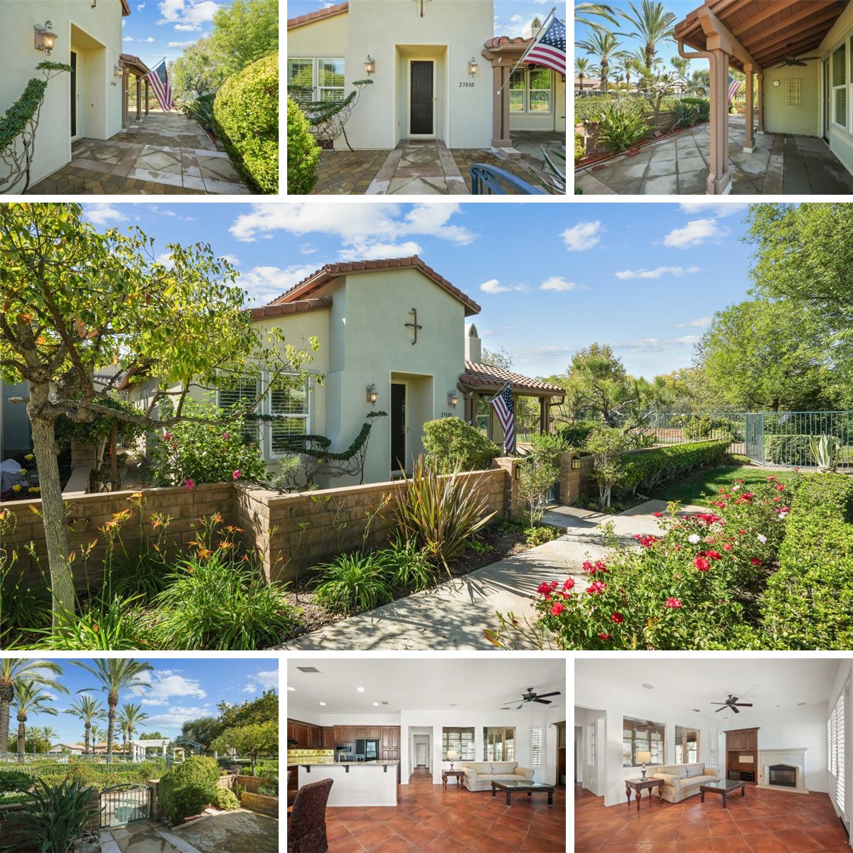 Location, Location, Location! Formerly the model home, this highly sought-after detached single-story residence is one of the most desirable floor plans in Belcaro, Valencia’s premier 55+ guard-gated community known for its lush landscaping, resort-style amenities, and vibrant lifestyle. Perfectly positioned on a premium view lot with no rear neighbors and just steps from the clubhouse, this beautifully maintained home offers both serenity and convenience. Step inside to find a move-in ready 2-bedroom, 2-bath home plus a spacious office or den ideal for a home office, hobby, or crafting space. The den features custom built-ins and elegant leaded glass details, adding both function and charm. The open-concept living area features 24”x24” tile flooring, custom wood shutters, and a cozy gas fireplace, flowing into the upgraded kitchen complete with a gas cooktop, built-in refrigerator, center island with breakfast bar, and abundant cabinetry for storage. The primary suite is a peaceful retreat with a generous walk-in closet and a spa-like ensuite bath that includes a jetted soaking tub, separate walk-in shower, dual-sink vanity, and a stunning custom leaded glass window. The secondary bedroom is equally spacious and perfect for visiting guests. Enjoy true indoor-outdoor living with two private patio areas ideal for alfresco dining, morning coffee, or relaxing while overlooking the picturesque greenbelt and rolling hills. Additional highlights include a well-appointed indoor laundry room (washer and dryer included) and a direct-access two-car garage with epoxy flooring and extra storage. Belcaro’s amenities offer something for everyone: a beautiful clubhouse, resort-style pool and spa with cabanas, fitness center, tennis and pickleball courts, bocce ball, library, outdoor kitchen and BBQ area, and a lush community garden park for those who love to garden or simply enjoy tranquil surroundings. Residents also enjoy an active social calendar featuring bingo nights, organized clubs, and community field trips that make it easy to connect and stay engaged. With its guard-attended gate, prime location, and turnkey condition, this home captures the best of resort-style living in the heart of Valencia.