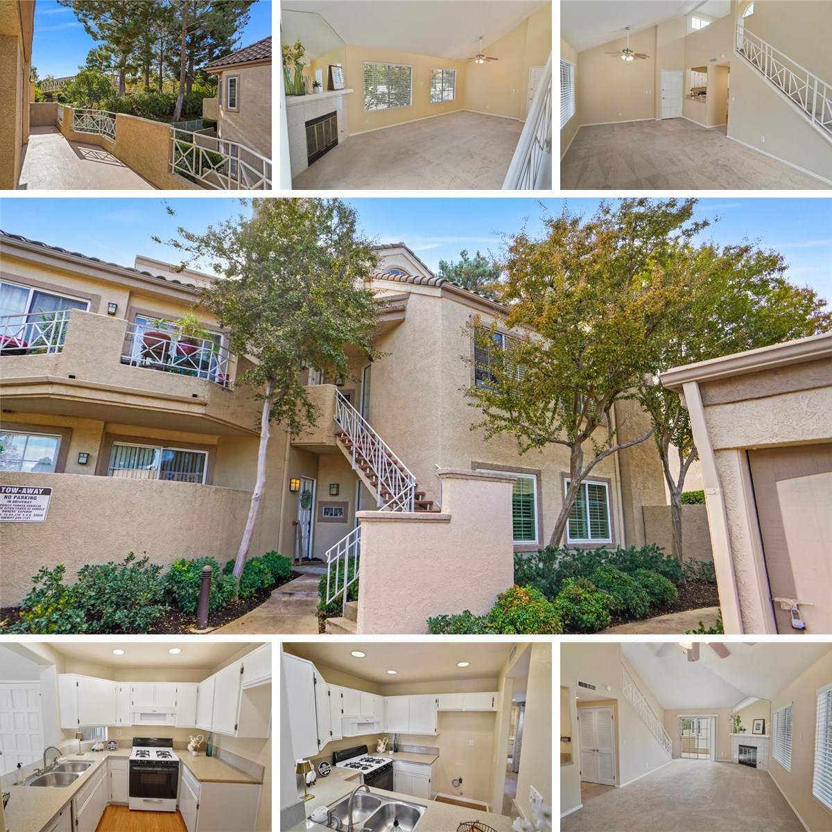 Charming, Well Maintained UPPER 2 Bedroom with a LOFT, END Unit in the "Santa Fe" Condominium Complex Offering a Neighborhood View, and a Detached, Side by Side Two Car Garage! The unit has a combination living room and dining area as well as a corner located fireplace with mantel and mirror, a primary suite with it's own double sink bath, walk-in shower with newer custom enclosure doors, and a walk-in closet with a two sided, mirrored door. The second bedroom has a hallway bath with a tub/shower combination and newer matching bath enclosure doors. The hallway has a linen closet as well as a double door pantry cabinet across from the kitchen which has quartz counters, and a breakfast bar open to the dining area. An open stairwell takes you to the oversized loft, complete with a closet area, pony wall, and potential use as a the 3rd bedroom or home office. There is newer neutral carpet throughout, matching linoleum flooring in the kitchen and bathrooms, a newer oversized stackable washer/dryer, some fresh paint, ceiling fans, wains coating in the 2nd bedroom, drapes and blinds, and a huge well maintained deck with a neighborhood view. Amenities in the complex include access to three pools and spas, a paseo system connecting the Valencia neighborhoods, as well as a large shopping center home to Kohl's, Corner Bakery, Whole Foods, and so much more! This unit is a must see for the discerning buyer; and, the first 2+ Loft on the market in Santa Fe in a year and a half!!