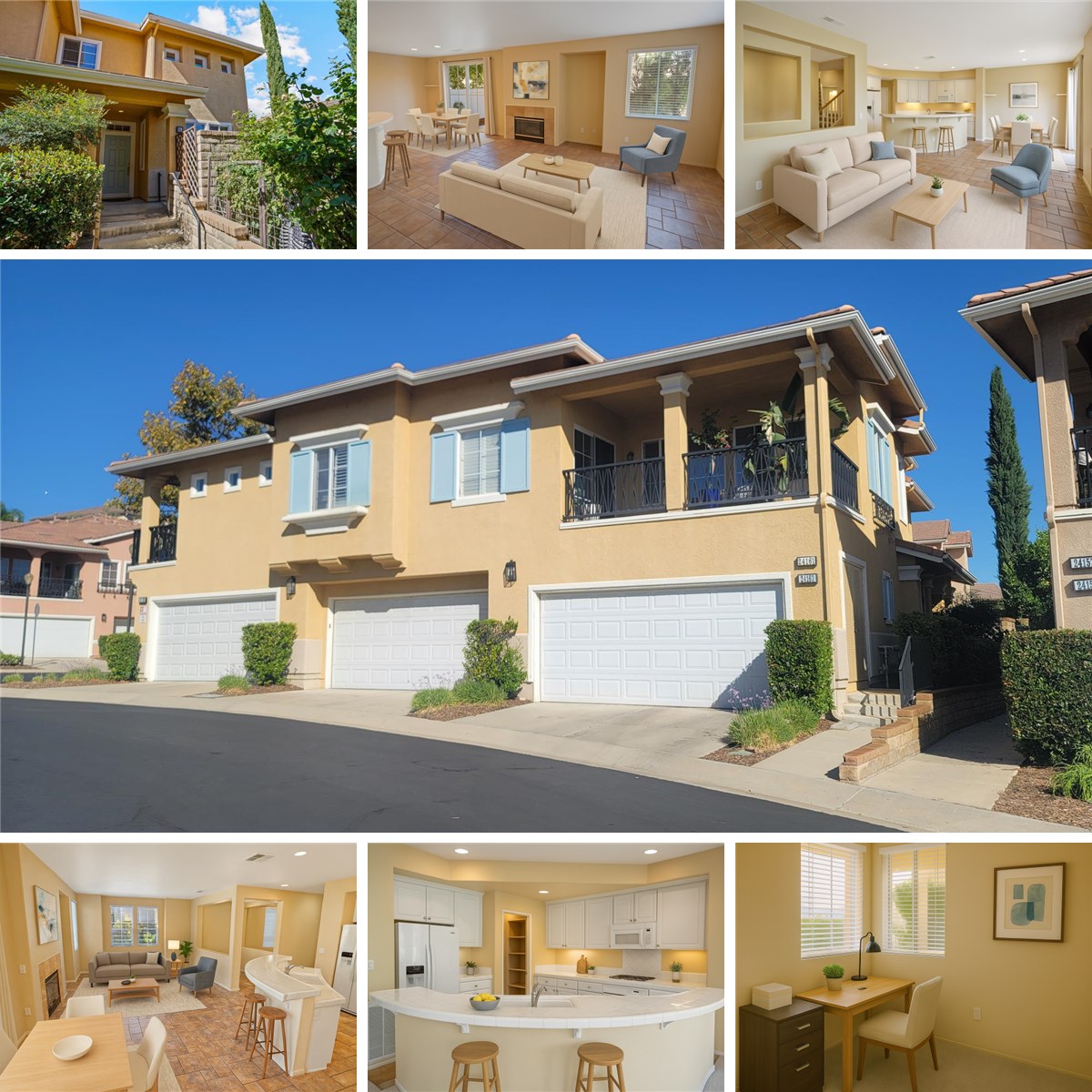 Valencia Cornerstone Town Home End Unit! No Mello Roos! 3 Bedroom + Loft area, with open floor plan! Eligible for FHA Spot Approval for low down payment financing. Call agent for details. Brand new carpet. Tile Flooring begins at Entry and continues throughout the first floor. Living Room has a cozy fireplace, and media niche. Dining Room with recessed lights has sliding glass doors to the patio and backyard. Kitchen with tile counters, cabinets with under cabinet lighting, gas cooktop, breakfast bar and walk-In pantry. Bedroom Two is located on the First Floor with a Full Guest Bathroom across the hall. Inside Laundry Room with storage cabinets. Upstairs Landing/Loft can be used so many ways. Primary Bedroom Suite with large walk-in closet. Primary Bathroom with dual sink vanity, walk-in shower, soaking tub and water closet. Bedroom Three with Full en-suite bathroom. Lushly landscaped backyard with wrap around patio. Attached two car garage. Newer A/C and FAU system. CORNERSTONE PERKS: Only 3 units per building; No Mello Roos; Lots of parking for guests, less density that most developments; 2 swimming pools, spas, BBQs, picnic area, playground,. Easy access to Santa Clarita paseo and trail system. Close to parks, shopping, restaurants and schools. Contact us or your agent to schedule a showing.