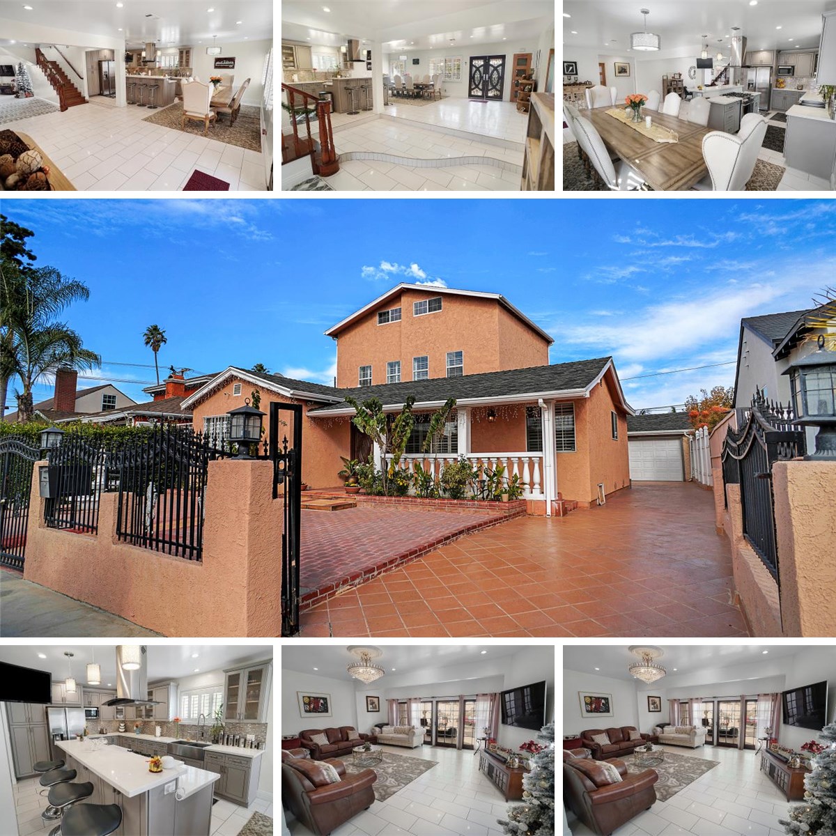 Completely renovated Two-story 4 bedroom & 4 bath designer home with open floor plan. Oversized entry, living, dining and family rooms - perfect for entertaining and holiday gatherings with great indoor/outdoor flow to both front and rear private yards. Newly remodeled modern chefs’ kitchen with center island & breakfast bar featuring stainless steel appliances, Caesar stone countertops, custom glass mosaic backslash tile and custom gray stylish cabinetry. Custom white tile floors throughout. Designer touches including tile flooring, modern kitchen, custom window treatments, chandeliers, custom paint. The second story with 2 bedrooms with high ceilings, dramatic master suite with marble bath and top of the line fixtures. Attic with staircase for storage or cozy hideaway.