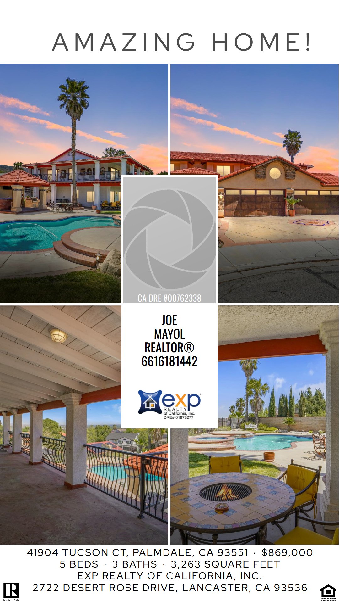 Amazing Million Dollar Custom Home with Amazing VIEW Lot Pool /Spa Outdoor Bar, Built in BBQ Plus so Much More! Owners have put Hundreds of Thousands of Dollars into this AMAZING PROPERTY. As soon as you drive up you see the WOW Factor! Large drive way with custom concrete (medallion Inset) Custom planters, Water feature and Custom wrought Iron doors to the Entry, Downstairs is Amazing with Custom Flooring, Paint and Light fixtures. Downstairs Bedroom and bath for Guests .The Kitchen is located off the Amazing Family room with a stone Fireplace ,Kitchen features Granite counter tops and backsplash , an amazing Wood type Veneer Subzero Refrigerator, center island and Breakfast bar. The large formal dining room is complete with a wall water feature there is also a Large Built in wall Safe (not included in the sale)in the entry. The second story of this house is Amazing with a Veranda (Approx. 12 feet wide ) that wraps the entire back of House with the most amazing views and can be accessed from 2 different sliding glass doors or via the spiral staircase. There are 4 Bedrooms upstairs. the Primary suite is huge with custom paint, large walk-in closet custom light fixtures. The Back yard is an Oasis Huge Custom in ground Pool and spa, Views of the valley from every angle ,A separate Patio Bar with Large TV ,Outdoor Fireplace ,Built In BBQ,A large out door storage room also used as a bathroom (not permitted) Fenced dog run and a children’s Play Area .Other features include Surround Sound, Dual AC units ,Fenced Trash can area, Intercoms , Pull through Garage Plus much much more. Experience luxury living beyond compare in this meticulously designed dream home.